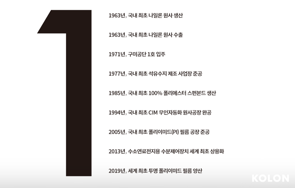 코오롱 '최초와 최고'의 역사
