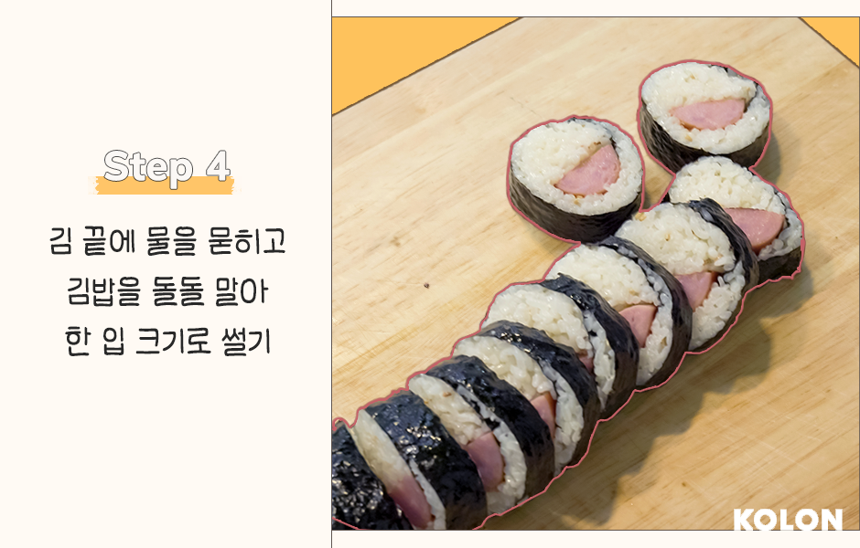 김밥은 한 입 크기로 썰어줍니다.