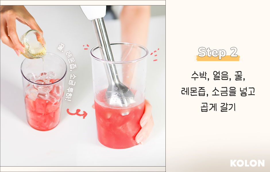 수박, 얼음, 꿀, 레몬즙, 소금을 한데 섞어