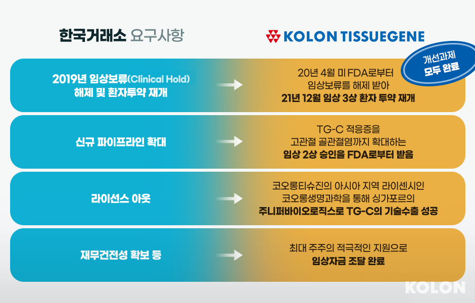 개선기간을 통해 코오롱티슈진에