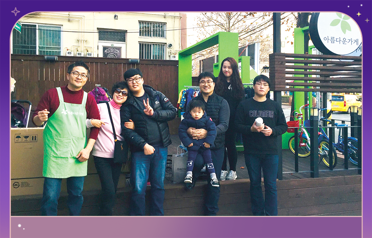 박한얼 씨(오른쪽에서 첫 번째)는 아름다운가게 등 다양한 단체의 봉사활동에 나서고 있다.