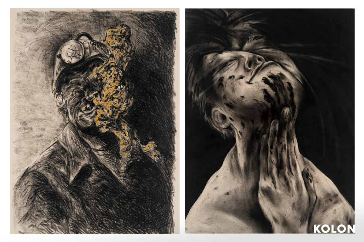 / 오른쪽 선크림_Sunscreen_2025_ Charcoal on paper_70 x 50 cm